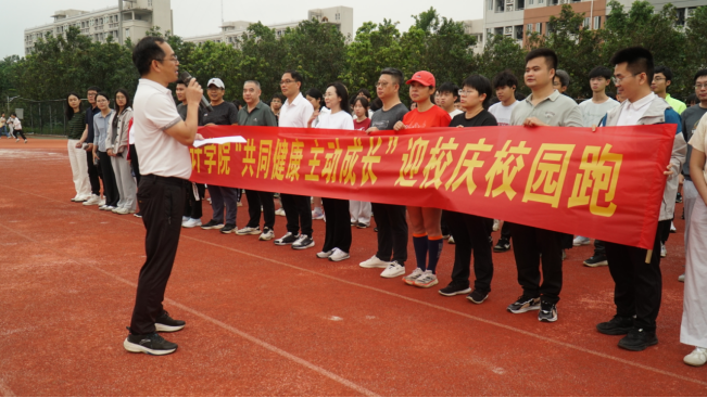 学院党委农康副书记在跑前动员讲话中,深刻阐释了此次校园跑活动的深远意义。他指出,学校90年的发展历程,是一部薪火相传、砥砺奋进的奋斗史,而此次校园跑正是对母校精神的传承与践行。“每一步奔跑,都是对母校过往辉煌的致敬;每一次坚持,都是对学院未来发展的承诺。”他强调,希望全体师生能将运动中展现的拼搏精神、协作精神融入到日常的学习、工作中,以实际行动为学院的建设和学校的90周年校庆贡献力量,让母校精神在新时代焕发出新的光彩。