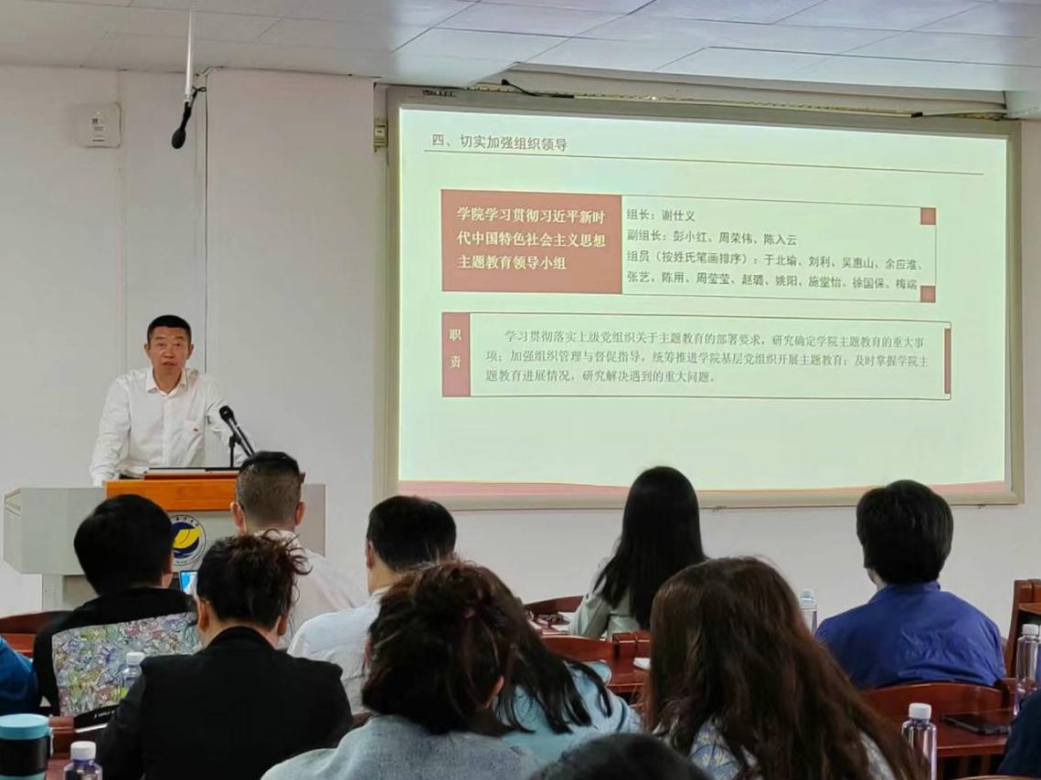 党委在明德楼A103室召开学习贯彻习近平新时代中国特色社会主义思想主题教育动员部署会。学院党委书记谢仕义作动员和部署讲话,院长彭小红主持会议。